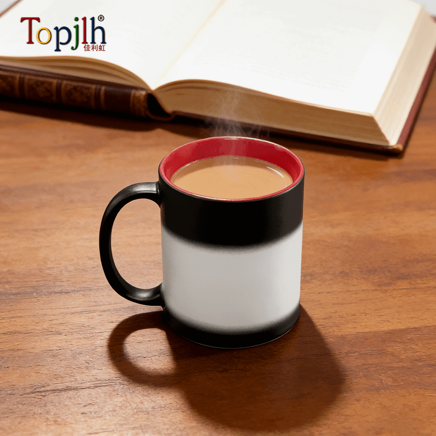 This incredible 11oz ceramic mug features a sleek, solid black surface. The true magic begins when you pour in a hot beverage—coffee, tea, or hot water. As the mug warms up, your custom-designed image, photo, or text magically appears in vivid color, transforming before your eyes. Once it cools, the design discreetly fades away, ready to reveal its secret again and again.