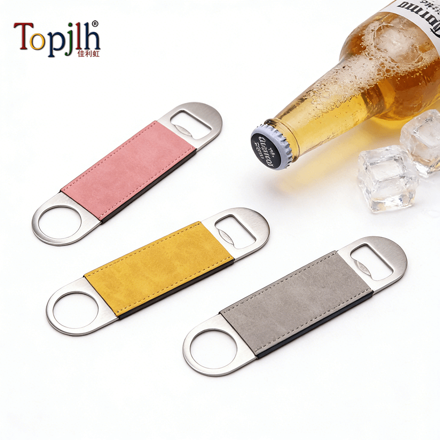 A premium promotional gift designed for brand promotion and corporate gifting. Featuring a robust stainless steel opener and a comfortable handle wrapped in high-quality PU leather for a secure grip. Supports laser engraving and heat sublimation printing for vivid, long-lasting customization of logos, slogans, or exclusive designs.