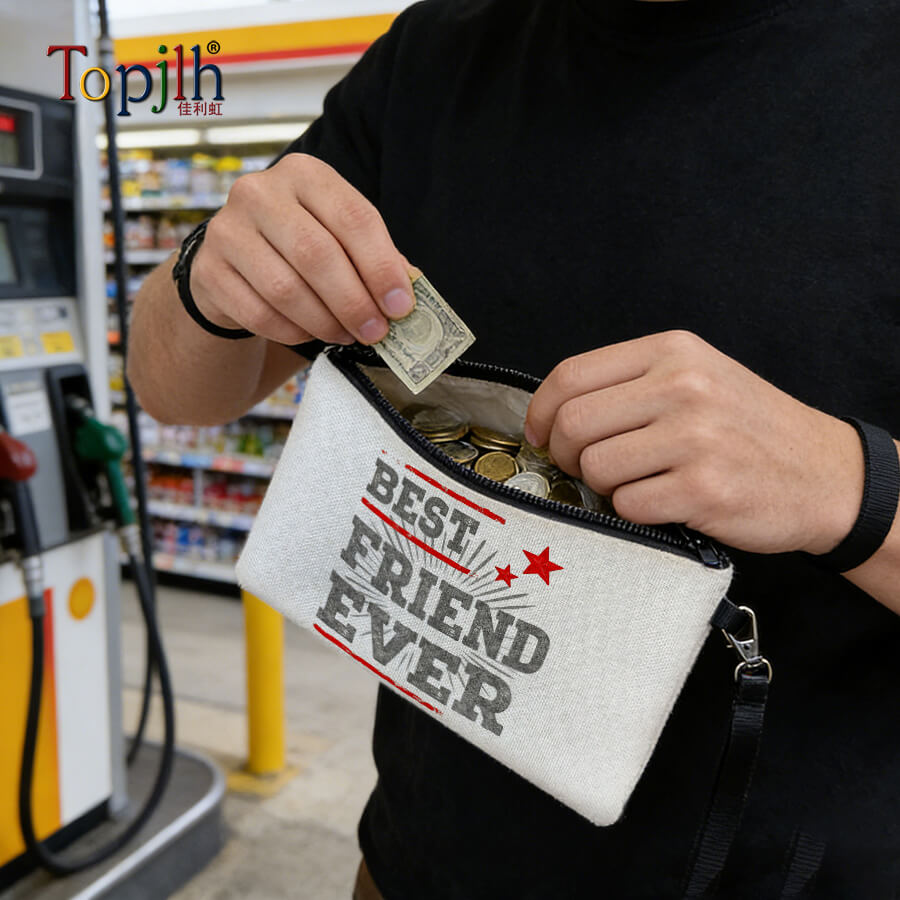 This is a small zippered coin pouch made using dye-sublimation printing. It’s not a luxury item, but it’s genuinely practical.